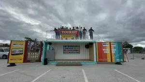 Wasaga Beach is celebrating the launch of its new Mobile Tourist Information and Welcome Centre. Designed with a 1970s-inspired look, the beach-themed centre features a retro marquee sign, swag shop, tourist information rack for maps and other marketing material.